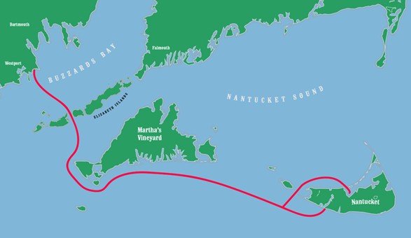 Map of South Coast with Possible Route from Dartmouth to Nantucket